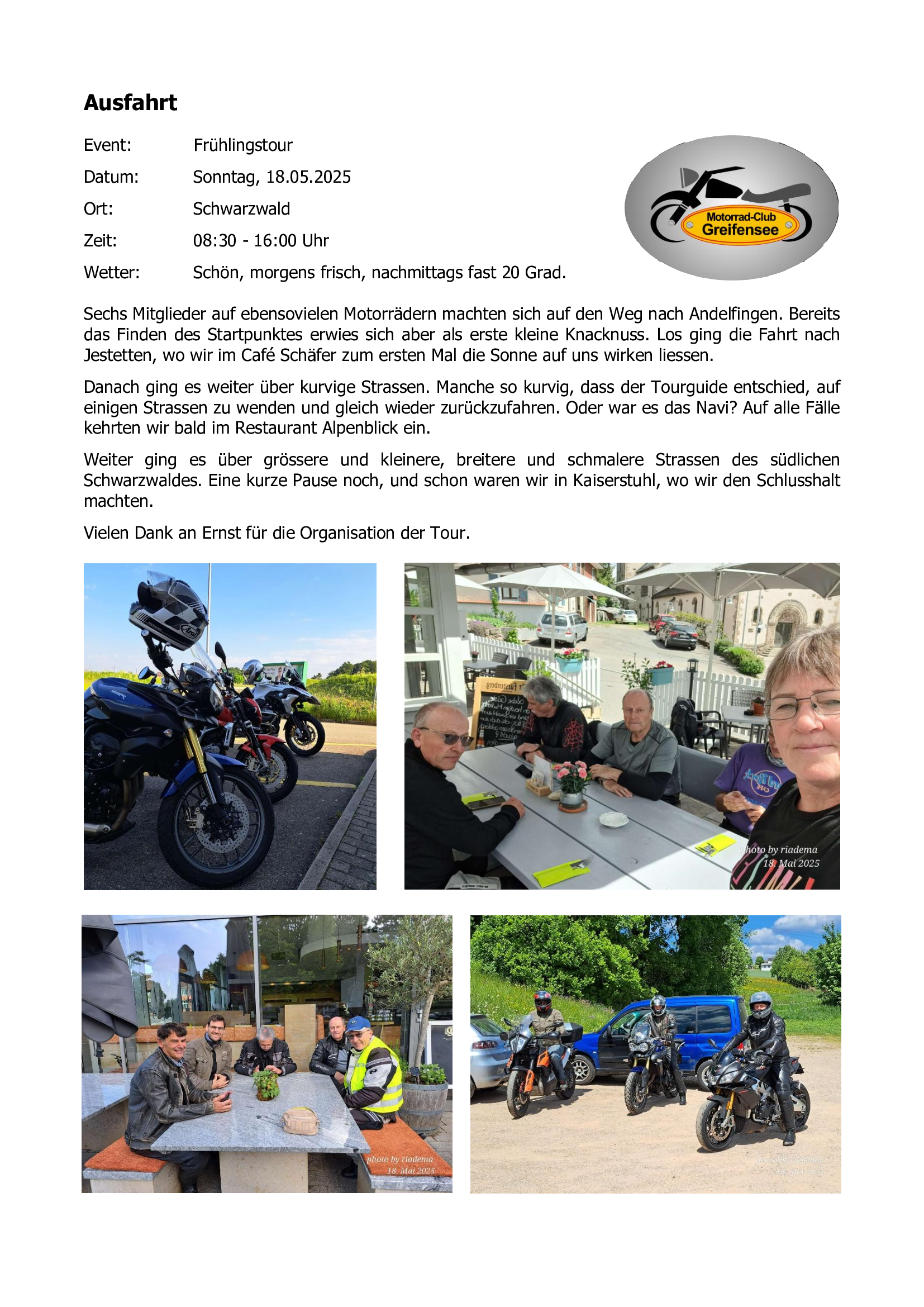Nach Saisonstart im April 2025 werden hier Kurzberichte 2025 veröffentlicht.