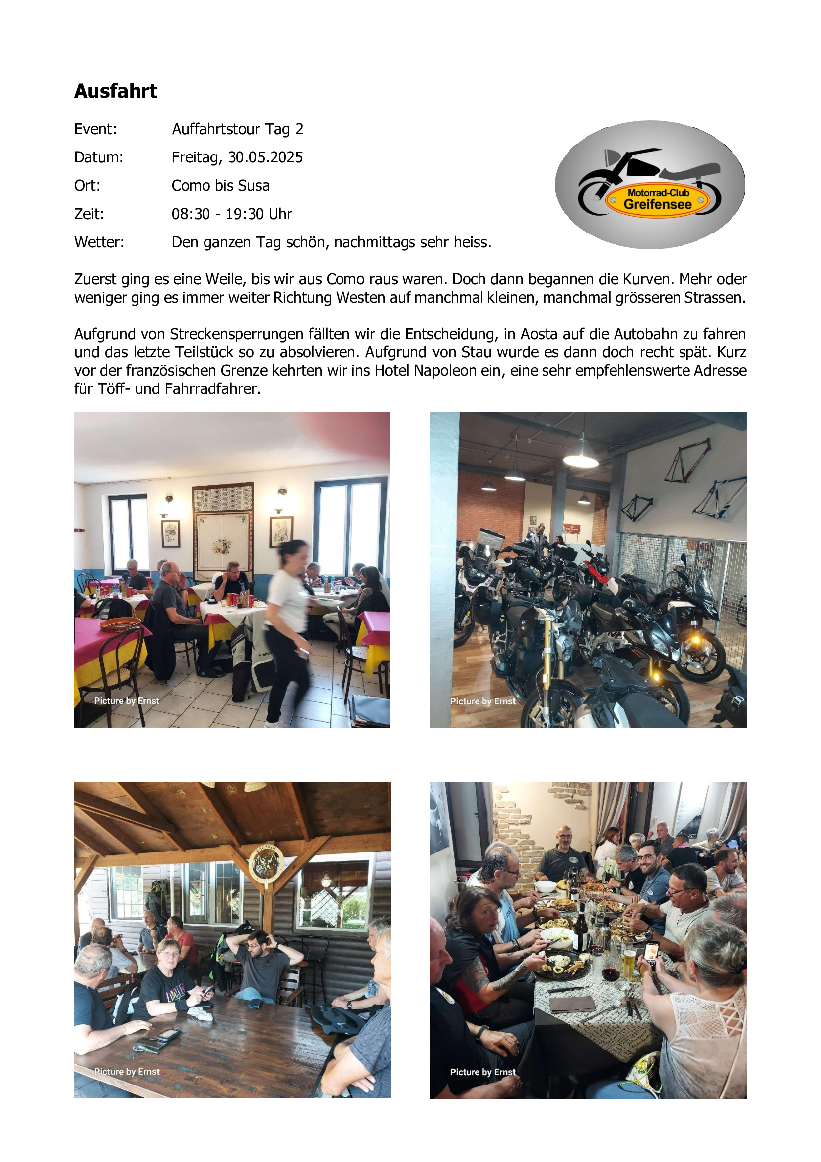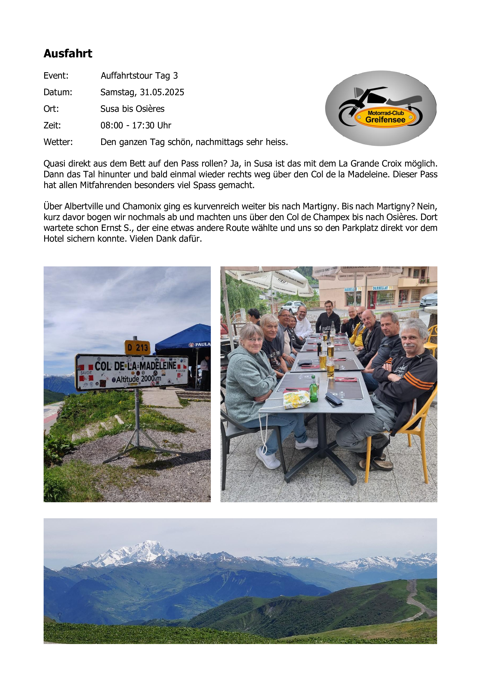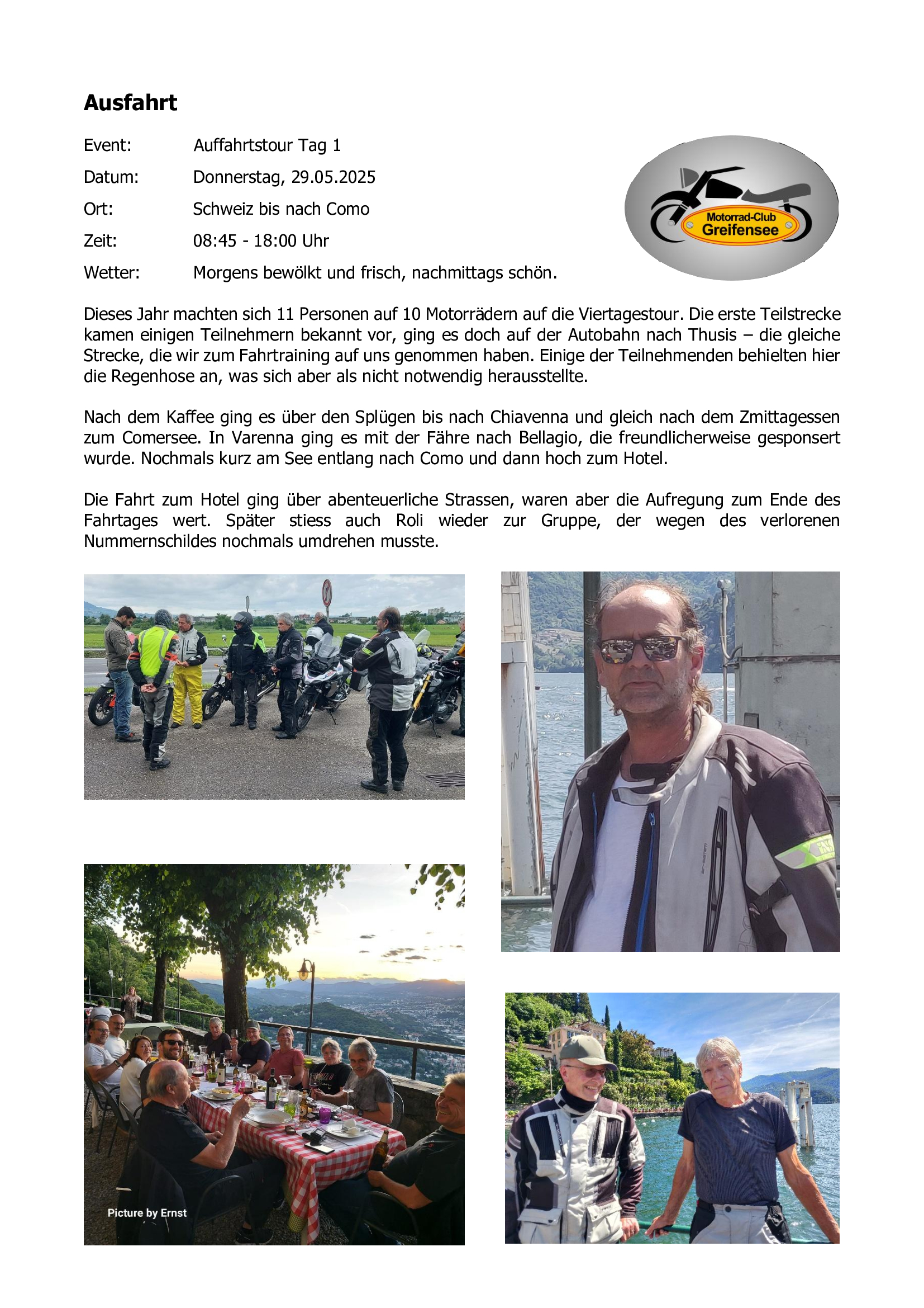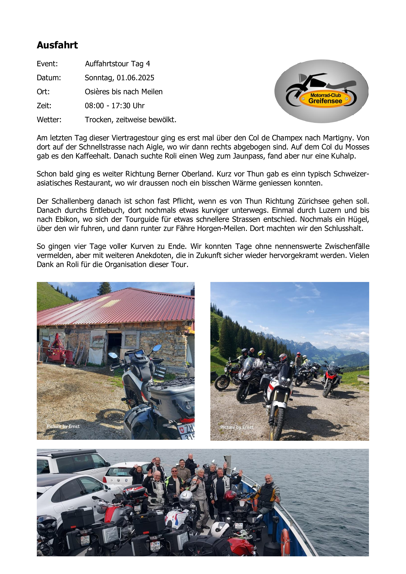 Nachfolgend einige Kurzberichte unserer Ausfahrten / Anlässe im 2024.