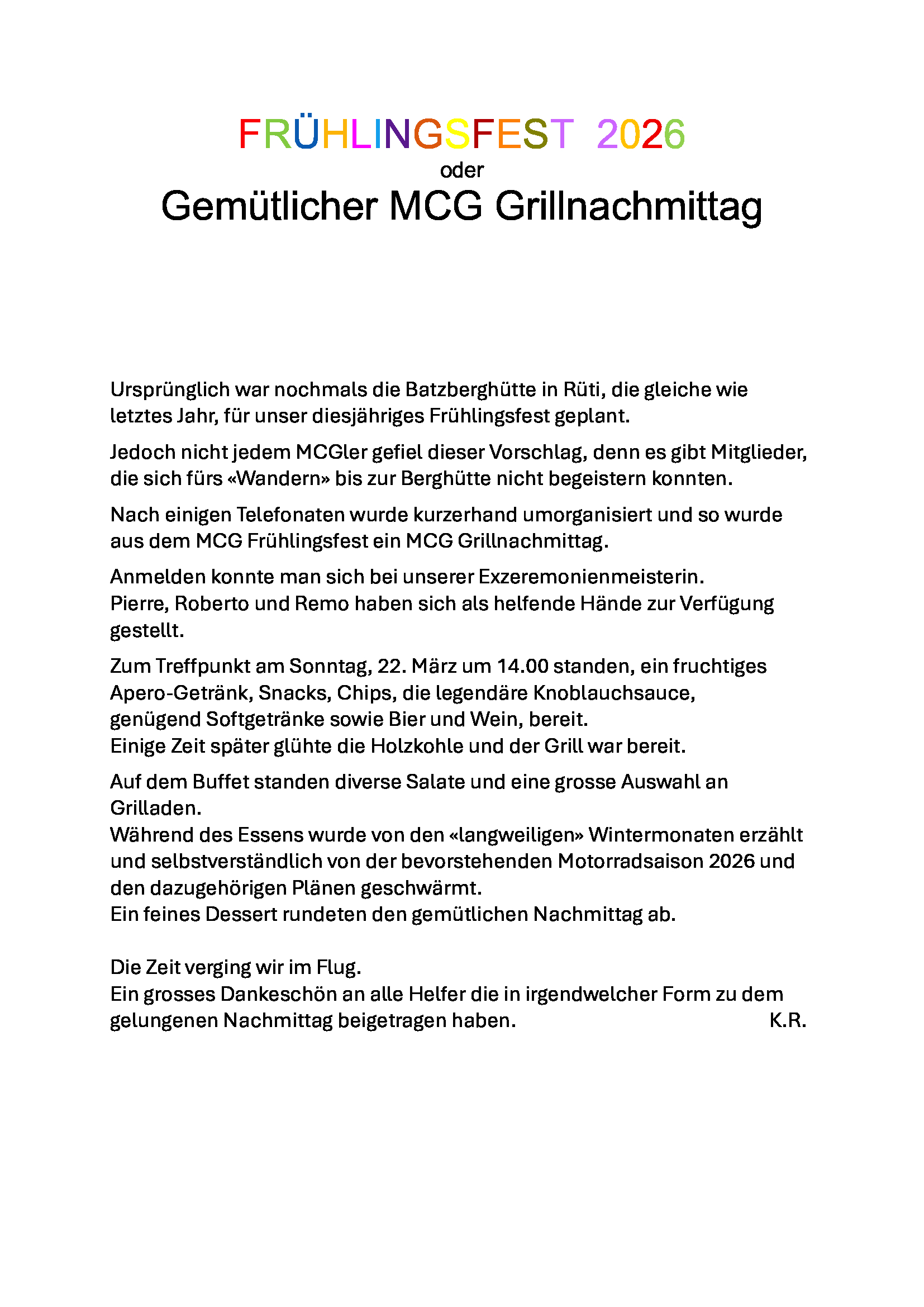 Nachfolgend einige Kurzberichte unserer Ausfahrten / Anlässe im 2024.
